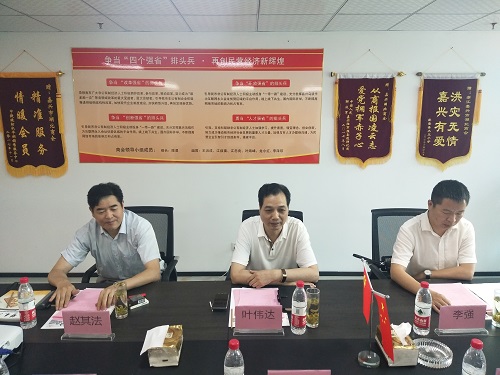 7月9日下午, 嘉興市委統(tǒng)戰(zhàn)部副部長、市工商聯(lián)黨委書記葉偉達(dá),嘉興市工商聯(lián)副主席、南湖區(qū)工商聯(lián)主席、中法控股集團(tuán)董事長趙其法等前往嘉興市湖北商會考察調(diào)研。