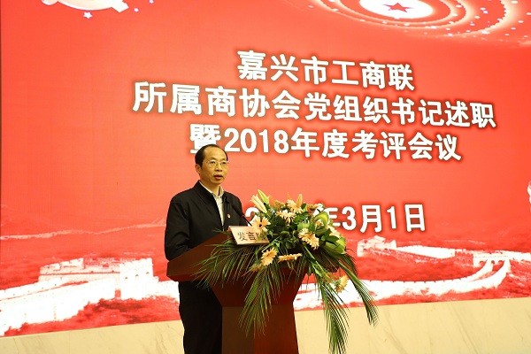 會(huì)上,嘉興市四川商會(huì)、重慶商會(huì)、湖南商會(huì)、紹興商會(huì)、內(nèi)蒙古商會(huì)、互聯(lián)網(wǎng)協(xié)會(huì)、會(huì)展協(xié)會(huì)、印刷協(xié)會(huì)、光伏協(xié)會(huì)等9家商協(xié)會(huì)黨組織對(duì)2018年度黨建工作進(jìn)行PPT口頭述職,21家商協(xié)會(huì)黨組織作了書(shū)面述職。
