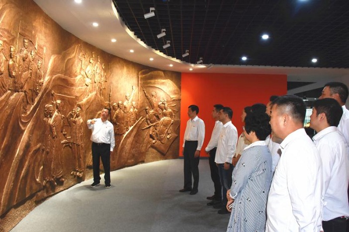 10:30,董利華帶領大家走進《日耀東方館—我和我的祖國》展館進行現場教學。該展館占地2000㎡,以近代革命藏品展、抗美援朝藏品展、十里紅妝民俗藏品展、票證藏品展等為主線,全景式展現了中國人民的革命史,展示了我們偉大祖國由站起來到富起來到強起來的70年巨變。萬余件藏品均由董利華提供。董書記指著每一件藏品,邊回憶邊講解,給大家上了一堂生動的愛國主義教育課。黨員羅利芬深情的說,能親眼見到“一本核心雜志的70年”,從1949年創刊號《學習》雜志,到1958年改版《紅旗》雜志,再到1988年改版《求是》雜志,每一期的字里行間都見證著偉大祖國不同時期的發展,為之振奮,收獲匪淺。黨支部副書記馮生?粗翱姑涝仄贰闭梗煌5牟林鵁釡I,他說,正是百萬志愿軍開赴朝鮮戰場,浴血奮戰,奪取了抗美援朝保家衛國的重大勝利,我們要更加崇敬學習英雄。大家紛紛為我們偉大祖國點贊!