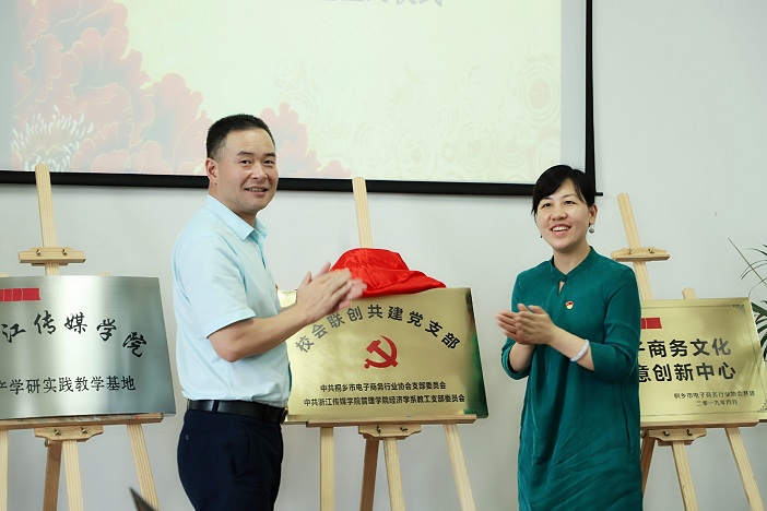 近日,桐鄉(xiāng)市電子商務(wù)行業(yè)協(xié)會(huì)與浙江傳媒學(xué)院共建的電子商務(wù)文化創(chuàng)意創(chuàng)新中心、浙江傳媒學(xué)院產(chǎn)學(xué)研實(shí)踐教學(xué)基地及校會(huì)支部共建舉行簽約與揭牌儀式。傳媒學(xué)院管理學(xué)院黨委書記王巨銓等院領(lǐng)導(dǎo),電商協(xié)會(huì)會(huì)長(zhǎng)錢云生、黨支部書記邱洪波等出席了揭牌儀式。桐鄉(xiāng)市工商聯(lián)副主席顧漢洪等應(yīng)邀出席。