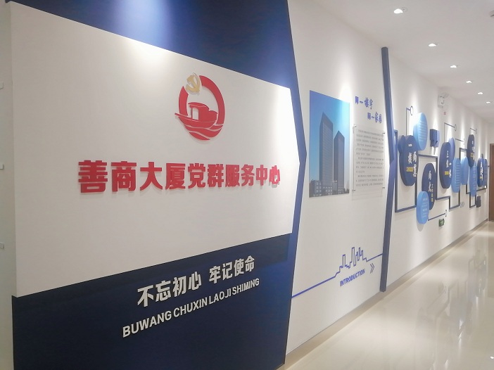 2018年,善商大廈成立的黨群服務中心,是嘉善縣首個樓宇黨群服務中心,2019年2月,善商大廈黨群服務中心入選滬浙毗鄰黨建黨性教育精品線路,2019年6月,善商大廈黨群服務中心又被授為踐行初心續航站,為更加出色的做好接待工作,嘉善縣工商聯專門從樓宇黨員中選出并培訓講解人員3名,到目前為止,善商大廈黨群服務中心已經接待參觀人員500余人次。