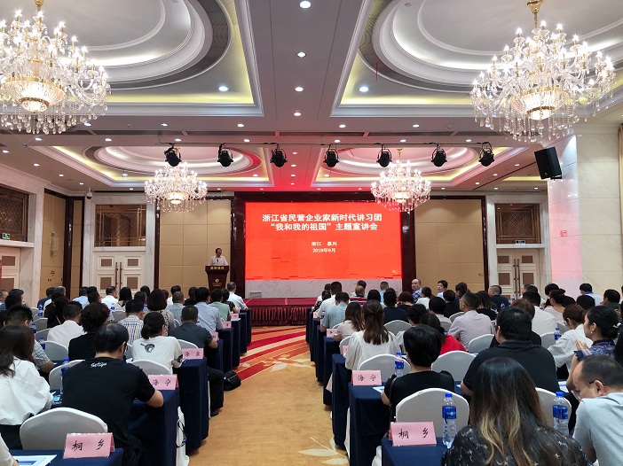 為慶祝新中國成立70周年,充分展示國家發(fā)展強大、民營企業(yè)成長壯大,9月10日下午,嘉興市晶暉酒店五樓嘉禾廳座無虛席,浙江省民營企業(yè)家新時代講習(xí)團“我和我的祖國”主題宣講火熱進行,浙江省商會副會長、康恩貝集團董事長胡季強,嘉興市工商聯(lián)副主席、中達聯(lián)合控股集團股份公司董事長金惠明同嘉興的300多位企業(yè)家分享“自己與祖國同成長、企業(yè)與祖國共發(fā)展”的精彩故事。