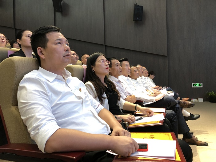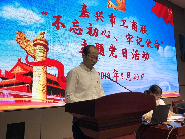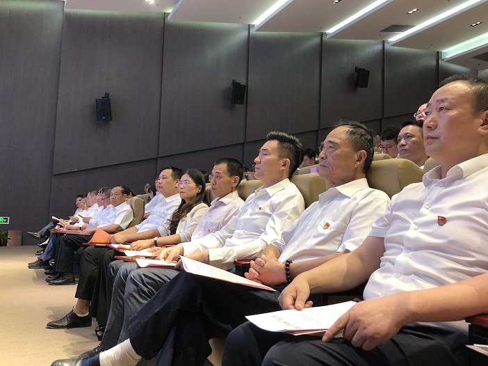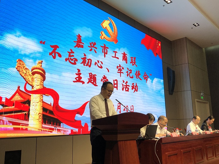 張華明代表市工商聯、總商會,向全市廣大民營企業家發出題為“不忘初心聽黨話 牢記使命跟黨走”的倡議:熱愛祖國、熱愛人民、熱愛中國共產黨,高舉習近平新時代中國特色社會主義思想偉大旗幟,大力弘揚紅船精神,積極踐行“勤善和美、勇猛精進”的新時代嘉興人文精神,做愛國敬業、守法經營、創業創新、回報社會的典范,勇當高質量發展的排頭兵;全面融入長三角一體化發展首位戰略,深度參與打好三大攻堅戰、“一帶一路”建設等,做有責任、敢擔當、受人尊敬的企業家,以實際行動書寫無愧于祖國、無愧于時代的絢麗篇章,以更加優異的成績向中華人民共和國成立70周年獻禮,為決勝全面建成小康社會、奪取新時代中國特色社會主義偉大勝利、實現中華民族偉大復興的中國夢作出新的更大貢獻!