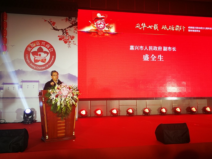 12月25日,成都嘉興商會(huì)舉辦七周年慶典暨新春團(tuán)拜會(huì)。嘉興市人民政府副市長(zhǎng)盛全生出席年會(huì)并講話。嘉興市經(jīng)信局、市長(zhǎng)三辦、市工商聯(lián)、嘉興港區(qū)、嘉興海關(guān)等部門(mén)單位的有關(guān)負(fù)責(zé)人到會(huì)祝賀。