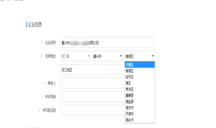 3.核對企業(yè)基本信息,填寫聯(lián)系人及手機號并驗證(建議填寫法人)。