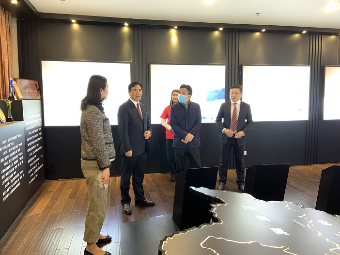 在嘉興市紹興商會及會長單位龍潤置業公司,調研組聽取了商會工作及助力會員企業復工復產情況,并參觀了由商會會長、龍潤置業公司董事長董利華創辦的“紅船精神耀東方”館藏展。林建良對董利華積極履行社會責任表示高度認可。