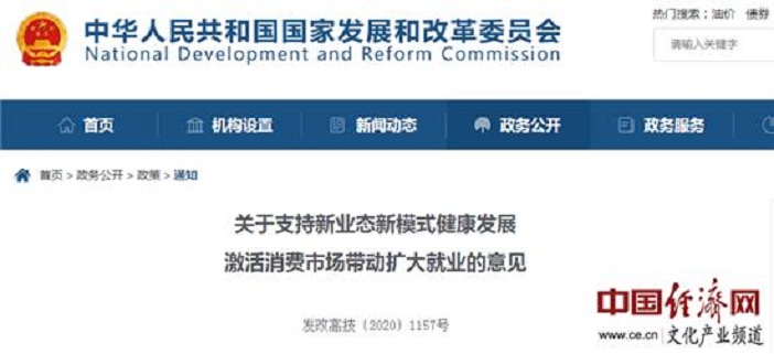 關于支持新業態新模式健康發展激活消費市場帶動擴大就業的意見