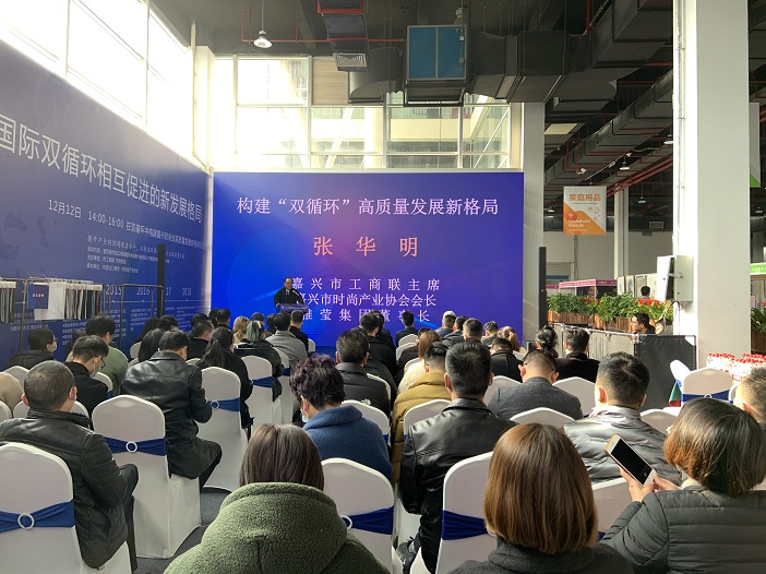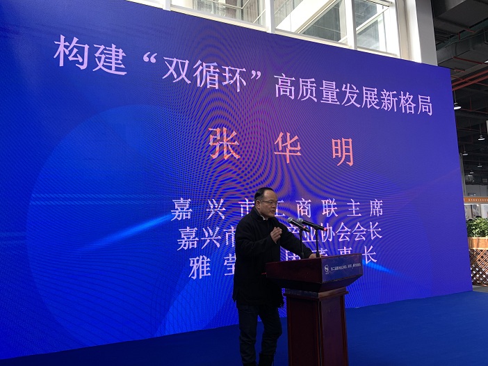 嘉興市工商聯主席、市時尚產業協會會長、雅瑩集團董事長張華明在致辭中表示:“雙循環”和“高質量發展”是黨中央根據當前國際國內形勢和我國長遠發展目標做出的重大戰略部署和決策。促進時尚產業的“雙循環”是全市紡織服裝上下游企業的共同愿望,促進時尚產業高質量發展更是全市紡織服裝上下游企業的共同追求。把質量好、品質優卻出不去的“外循環”產品轉為“內循環”,為高質量的紡織服裝上下游企業搭建對接互動平臺,擦出火花,相互促進,相互成就,是今天舉辦此場活動的初衷。