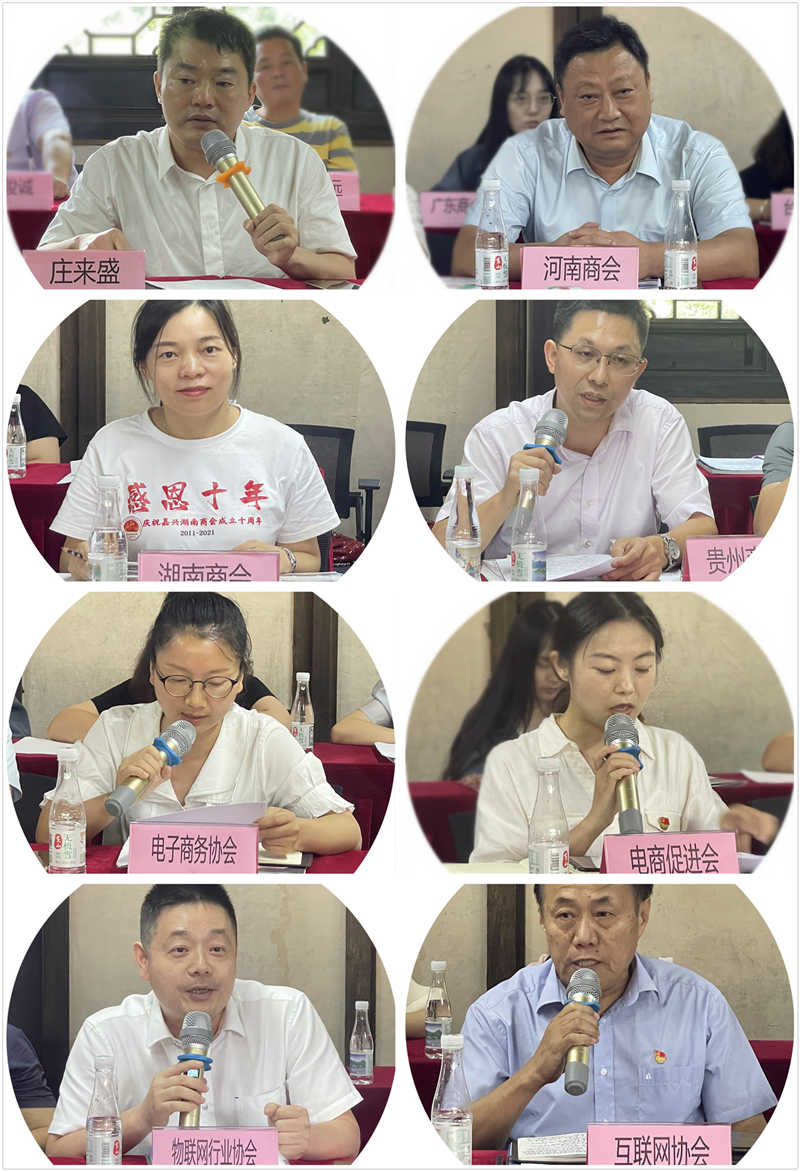 嘉興市福建商會、嘉興市河南商會、嘉興市湖南商會、嘉興市貴州商會、嘉興市電子商務行業協會、嘉興市電子商務促進會、嘉興市物聯網協會、嘉興市互聯網協會等8家商協會圍繞“數字商會”建設進行了交流發言。