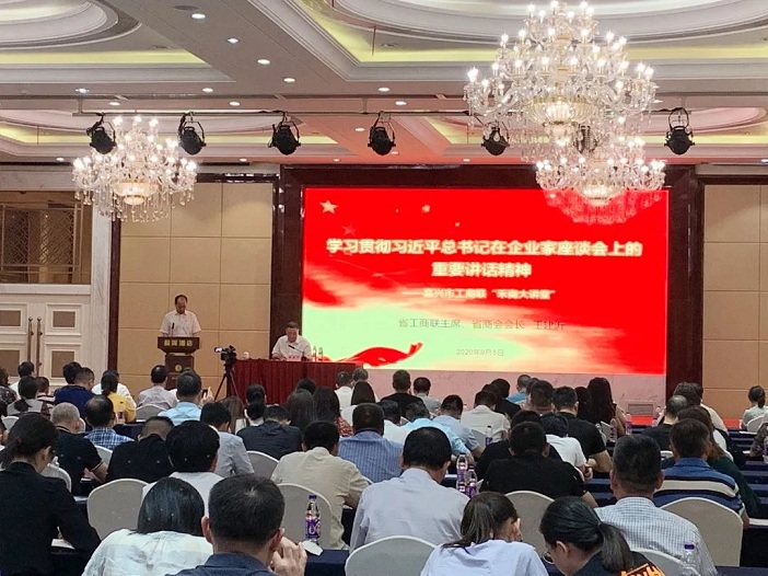 9月8日,浙江省工商聯主席、富通集團董事長王建沂做客2020年第三期《禾商大講堂》,專題宣講7月21日習近平總書記在企業家座談會上的重要講話精神。嘉興市各級工商聯執委以上人員、市屬商協會負責人、各級工商聯機關人員200多人參加講堂活動。嘉興市委常委、市委統戰部部長張仁貴,省工商聯副主席元成茂,嘉興市工商聯主席、雅瑩集團董事長張華明等出席會議。嘉興市委統戰部副部長、市工商聯黨委書記張建生主持會議。