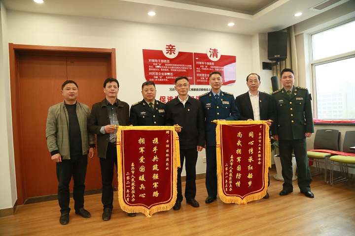 4月1日下午,嘉興軍分區領導:市委常委、軍分區政委于昕,司令員朱榮輝將錦旗和感謝信送到嘉興市工商聯,向工商聯及相關愛心企業對征兵工作給予的大力支持表示衷心感謝,雙方以召開座談會的方式暢敘軍企情誼。 嘉興市委常委、統戰部部長張仁貴出席座談會,希望雙方在雙擁模范城建設、黨建高地打造等方面繼續加強共建。嘉興市委統戰部副部長、工商聯黨委書記張建生主持座談。