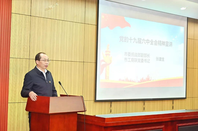 張建生在宣講中指出,黨的十九屆六中全會(huì)閉幕以后,各商協(xié)會(huì)及黨組織通過(guò)集中學(xué)習(xí)、專(zhuān)題研討、主題黨日、個(gè)人自學(xué)等形式學(xué)習(xí)宣傳貫徹全會(huì)精神,迅速掀起了學(xué)習(xí)貫徹會(huì)議精神的高潮。下一步,各商協(xié)會(huì)要通過(guò)多種方式向廣大會(huì)員宣講,努力從黨的百年奮斗重大成就和歷史經(jīng)驗(yàn)中汲取智慧和奮進(jìn)力量,推動(dòng)商協(xié)會(huì)和民營(yíng)企業(yè)高質(zhì)量發(fā)展。