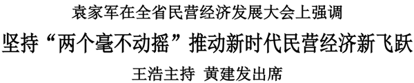 袁家軍強調,要加強和改進黨對民營經濟工作的領導,各地各部門堅持黨政“一把手”親自掛帥、親自統籌、親自主抓,把推動民營經濟高質量發展擺在更加突出的位置。要始終堅持“兩個毫不動搖”方針,解放思想、深化認識,完善政策體系,省委、省政府近期將研究出臺推動新時代民營經濟新飛躍的政策文件;優化服務舉措,突出做好“聽、引、幫”工作,構建親清政商關系,切實保障民營企業合法權益,把推動民營經濟高質量發展的各項決策部署落到實處。