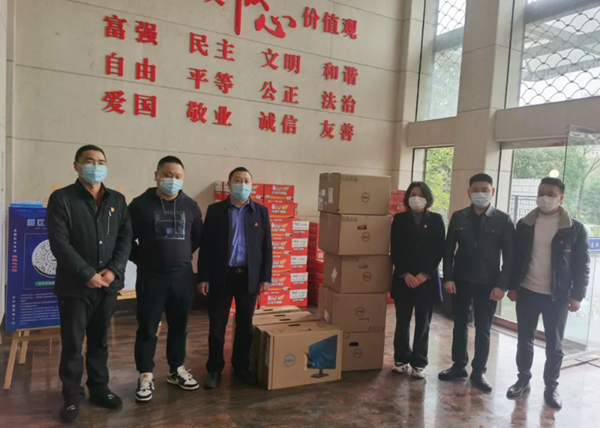 3月20日下午,嘉興市云南商會黨支部組建疫情防控工作應(yīng)急小組,由組長楊永貴,副組長王平、張運江、張朝兵一行代表向海寧市海洲街道捐贈5臺戴爾電腦,價值2萬余元,電腦將用于數(shù)據(jù)專班對疫情的信息比對、核實和研判。