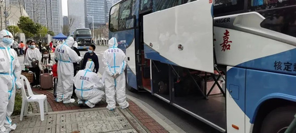平湖市旅游行業協會單位嘉興市藍天國際旅游有限公司平均每天派出大小巴士各40輛,司機24小時待命,幫助運送核酸樣本、醫護人員轉運及保障,同時發動公司其他員工參與志愿者工作。
