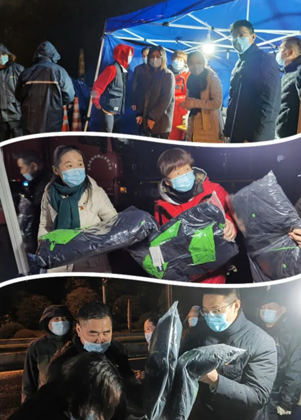 3月21日晚上,倒春寒的風雨吹得讓人瑟瑟發抖,大云鎮黨委、政府領導及嘉善縣大云商會會長朱建華、大云商會黨支部等相關人員帶著"溫暖牌″羽絨服赴大云高速兩個卡點慰問一線工作人員。