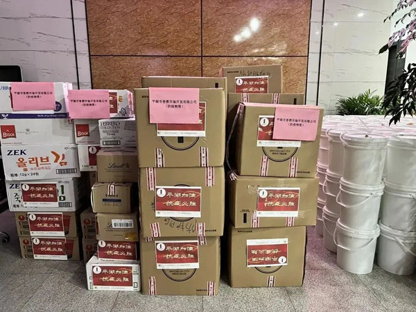 平湖市新埭商會會員單位平湖市香都市場開發有限公司捐贈防疫物資,平湖市濤強機械有限公司定向給企業疫情防控組捐贈被子、臉盆、洗漱品等生活必需品。