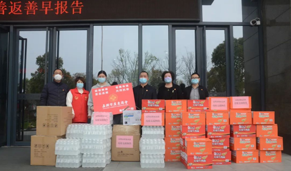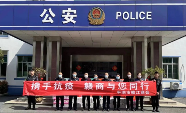 平湖市贛江商會給平湖中醫院和巡特警大隊送去牛奶、泡面、餅干等物資。