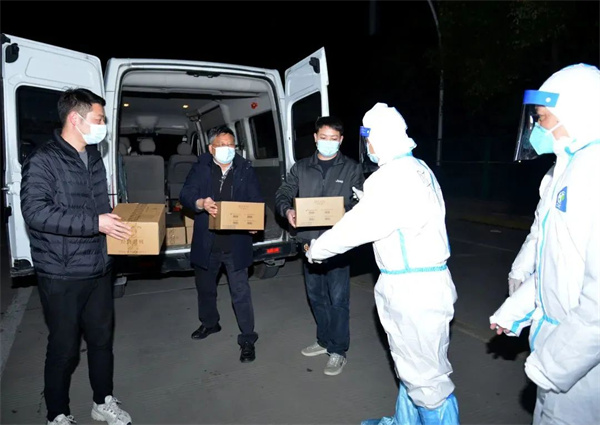 浙江飛靈飛遜服飾有限公司捐贈了1000套防護服,并向隔離點的工作人員及高齡老人送上愛心餐。