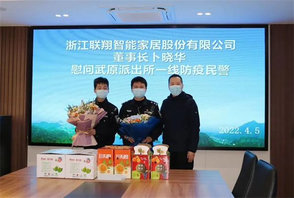 4月5日,浙江聯翔智能家居股份有限公司董事長卜曉華傳遞愛心接力棒,向武原派出所捐贈防疫物資6萬元,將企業的愛心傳遞給晝夜堅守在疫情防控一線的民警。