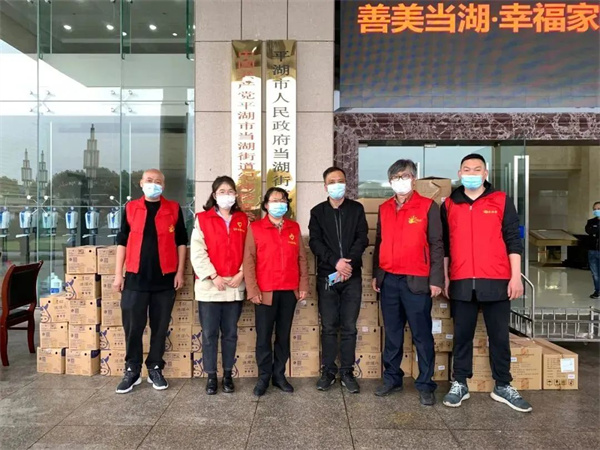 浙江長紅大藥房連鎖有限公司向當湖街道捐贈6800只醫用外科口罩、460盒維生素C、200包板藍根、58箱道可德飲用水、600盒魚腥草口服液等價值5萬余元的防疫物資。
