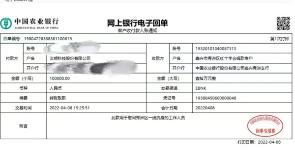 漢朔科技股份有限公司積極組織員工輪流參與光伏科技館核酸檢測點工作,并通過嘉興市秀洲區紅十字會捐贈10萬元的抗疫資助款,用于慰問一線抗疫的工作人員。