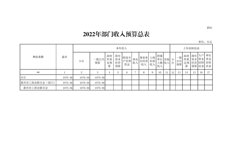 嘉興市工商業(yè)聯(lián)合會(huì) 2022 年部門預(yù)算