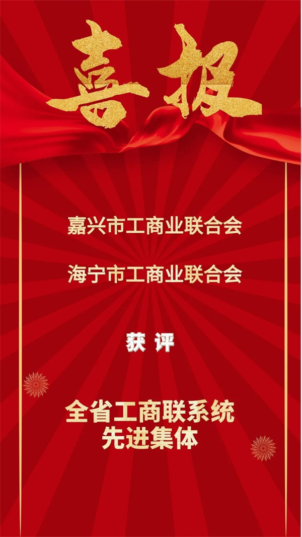 嘉興市工商業聯合會、海寧市工商業聯合會獲得“全省工商聯系統先進集體”榮譽。嘉興市工商業聯合會黨委委員、秘書長王靜,平湖市工商業聯合會黨組成員、副主席褚衛國,嘉善縣工商業聯合會工商經濟科科長章偉明,桐鄉市工商業聯合會非公有制經濟服務中心主任張亞萍獲得“全省工商聯系統先進個人”榮譽。