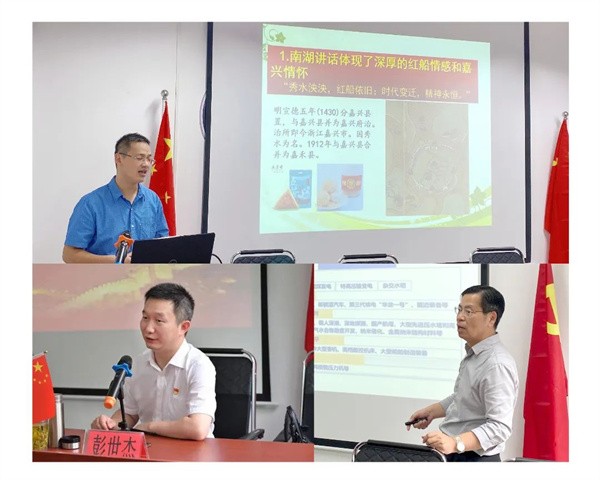 培訓邀請了浙江紅船干部學院彭世杰副教授、陳月江副教授、林晨講師,分別作了《強化黨章意識 爭做合格黨員》《中國共產黨黨史-科技發展史》和《弘揚紅船精神 堅定理想信念》專題輔導,安排全體學員觀看了電影《建黨偉業》和《建國大業》。