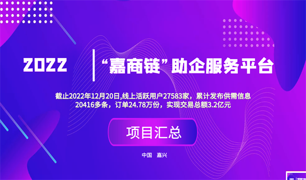 以“商會碼”為基礎升級開發了“嘉商鏈”子場景,為商協會會員企業提供供需信息對接、金融產品服務、人力資源方案、物流服務項目、惠企政策推送等服務,解決企業產業鏈供應鏈中斷、資源暫時性短缺、信息不對稱、無法順利復工復產、無法達產滿產等問題。“嘉商鏈”平臺把發布會員企業產品、原材料、服務等供需信息,實現資源互通有無作為平臺的重點內容,依托已經建成的市工商聯毛衫產業、智能工具、優質食品、箱包、時尚產業、食品工業、光伏、繭絲綢等八家產業鏈供應鏈服務中心,發揮服務中心龍頭企業和專業市場的鏈主作用,提升資源對接的精準度,帶動整個產業鏈上下游關聯企業復工復產。截止目前,線上活躍用戶27583家,累計發布供需信息20416余條,內容涵蓋產品物資、原料耗材、元器件、零部件、工業軟件、企業服務等各方面,訂單24.78萬份,實現交易總額3.2億元。