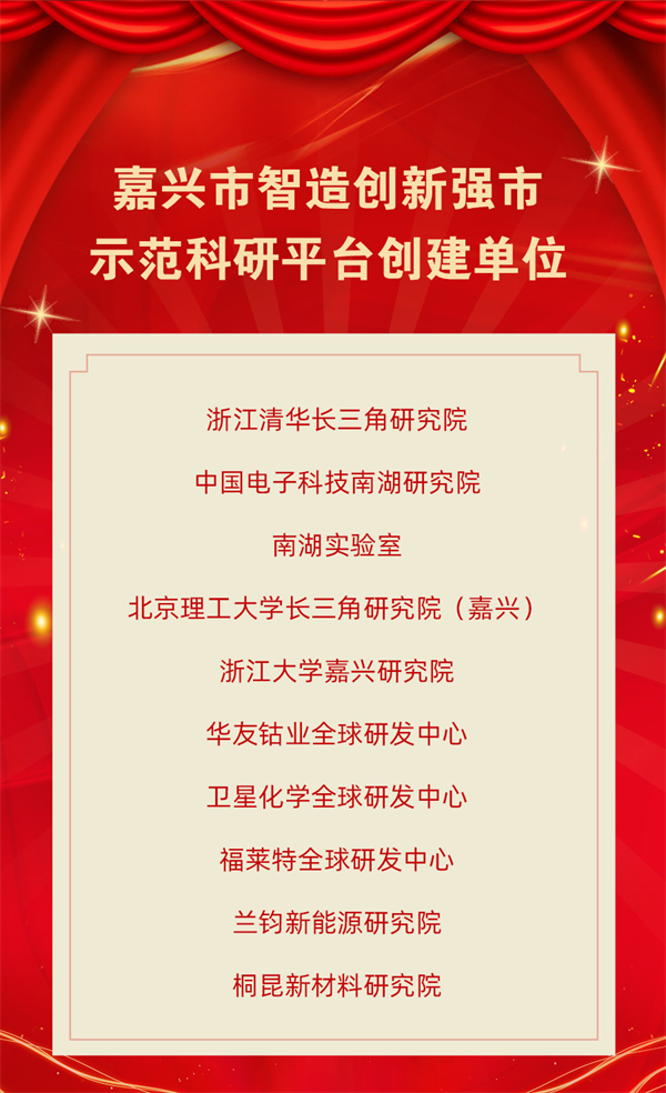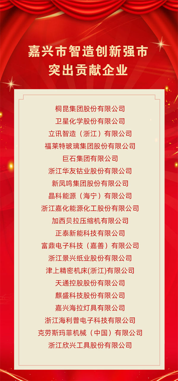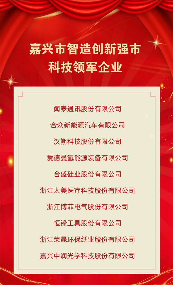 會上,嘉興市智造創新強市突出貢獻企業、智造創新強市科技領軍企業、智造創新強市示范科研平臺創建單位等一批優秀企業、平臺喜獲表彰、命名。值得一提的是,這是嘉興首次頒發“智造創新強市”相關的榮譽。