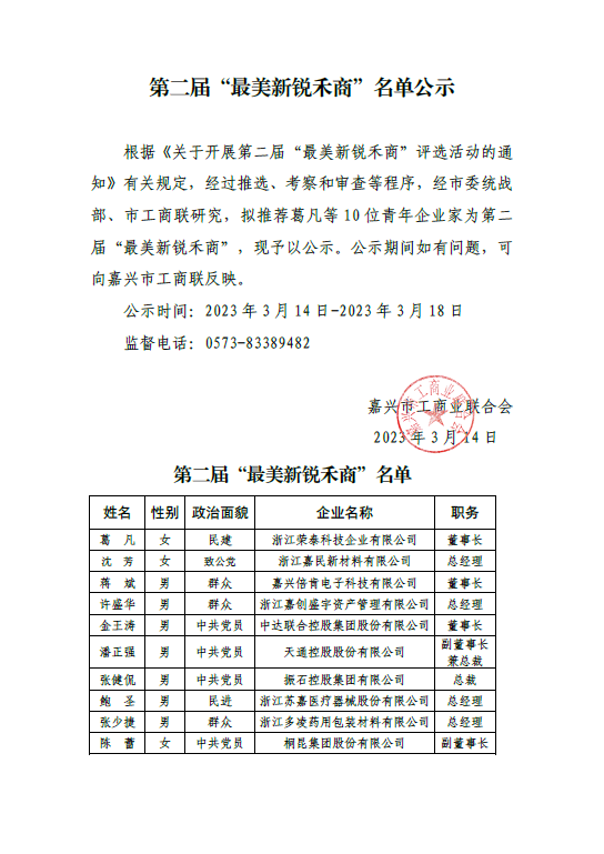 關于公示2022年度市級行業協會商會、市內異地商會和市外嘉興商會工作評價結果和優秀會長、金牌秘書長和商協會工作標兵人選的通知