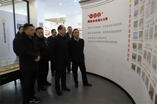 調研期間,許崗書記一行還參觀了嘉興市商協會黨員之家和商會展陳館,深入了解百年商脈歷史沿革和商協會黨建工作。