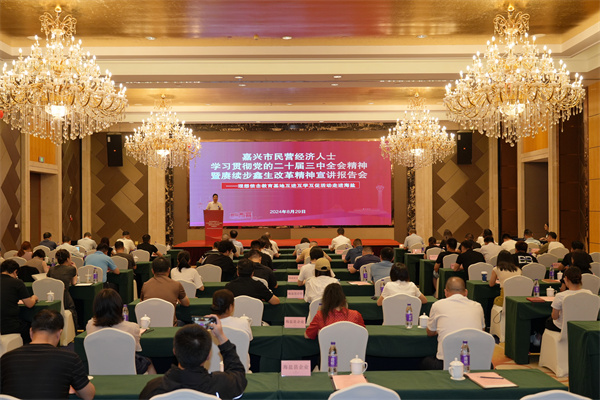 為推動學(xué)習(xí)宣傳貫徹黨的二十屆三中全會精神持續(xù)走深走實,認(rèn)真貫徹落實省委十五屆五次全會精神,推進(jìn)民營經(jīng)濟(jì)人士理想信念教育基地互進(jìn)互學(xué)互促活動,8月29日,市工商聯(lián)舉辦嘉興市民營經(jīng)濟(jì)人士學(xué)習(xí)貫徹黨的二十屆三中全會精神暨賡續(xù)步鑫生改革精神宣講報告會。海鹽縣委常委、統(tǒng)戰(zhàn)部部長王雪君出席會議并致辭,新時代中國特色社會主義事業(yè)優(yōu)秀建設(shè)者、全市新生代企業(yè)家代表,市、縣兩級工商聯(lián)分管領(lǐng)導(dǎo)和機(jī)關(guān)干部等100余人參加。會議由嘉興市工商聯(lián)副主席鞠峰主持。