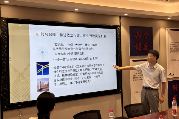 市政協無黨派界別委員、浙江六和(嘉興)律師事務所管委會副主任吳濤從出臺背景、主要內容和立法價值三個維度對《民營經濟促進法》進行了全面解讀,讓與會人員充分理解了法律內涵與意義,為后續交流奠定了堅實的基礎。市發展改革委副主任張標、市綜合行政執法局副局長王少順、市司法局(市行政復議局)法治調研處處長朱穎玉,圍繞嘉興市民營經濟政策、涉企執法檢查等內容,先后介紹了我市相關職能部門對《民營經濟促進法》的宣傳貫徹情況,以及部門聯動、多措并舉推動《民營經濟促進法》廣泛實施的有效舉措。