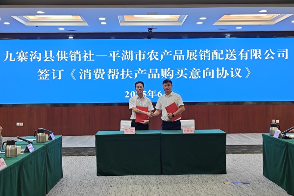 九寨溝縣供銷社與平湖市農產品展銷配送有限公司簽訂《消費幫扶產品購買意向協(xié)議》,與嘉興東方國藥飲片股份有限公司簽訂《中藥材消費幫扶采購意向協(xié)議》。